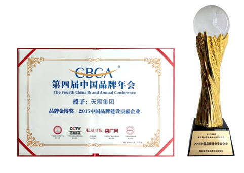 天狮集团荣获“2015中国品牌建设贡献企业” 天狮集团作为全球大健康产业的领军企业,在李金元董事长的引领下,坚持“全球化发展战略”和“建设自主品牌”的战略目标,立志打造享誉世界的民族品牌,通过20年全球多元文化的交流与融合,打造了国际化的商业平台,向世界传播中华优秀文化,推广东方养生智慧,在110个国家和地区设立了分公司,为全球190多个国家和地区近4000万家庭的消费者带来绿色、健康、自然、科技的高品质时尚生活,天狮品牌赢得各界广泛赞誉。随着天狮集团“一体两翼”战略布局的持续深入,法国尼斯游等一系列国际大型年会的精彩绽放,天狮大学全面建设并与诸多海外知名学府和教育机构紧密合作,万众创新、大众创业的“互联网+”电子商务的持续创新,天狮积极落实国家“一带一路”政策,实现第三次事业腾飞,成为备受国际关注的知名民族品牌。本次大会上,经活动主办方权威评定,天狮集团获得“2015中国品牌建设贡献企业”荣誉,天狮集团李金元董事长作为大健康产业的领军人物,凭借在民族品牌国际化建设方面所作出的突出贡献,荣获“2015中国品牌建设功勋人物”殊荣。